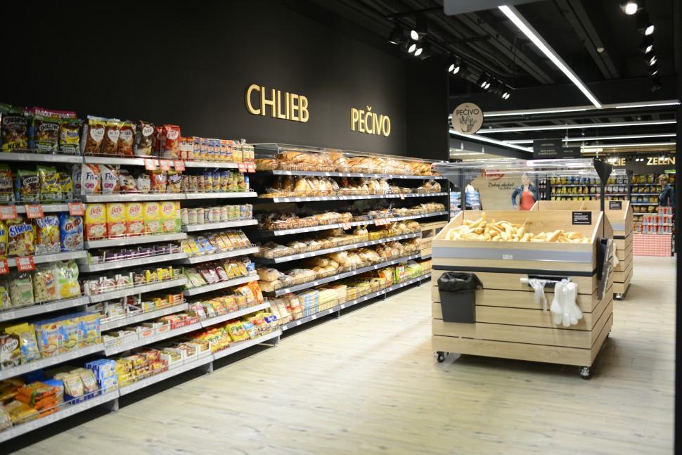 Samozrejmosťou je široký výber tovaru s dôrazom na čerstvosť. Z približne 7000 položiek tvoria čerstvé tovary približne tretinu. Z tohto dôvodu pribudli prístenné chladiace vitríny, pestrej ponuke dáva vyniknúť aj tmavý podhľad. „Dôraz na tovar podčiarkuje i zvolené osvetlenie. Bežné svietidlá vytvárajú difúzne, umelé a chladné svetlo, a preto sme použili okrem líniového osvetlenia aj bodové teplé osvetlenie pre zvýraznenie sortimentných sekcií alebo zaujímavých ponúk,“ opisuje detaily predajne V. Kocúrek. Ponuka čerstvého mäsa a mäsových výrobkov láka už z diaľky korporátnou farebnosťou partnera sekcie, ktorá je stelesnená červeným, lesklým keramickým obkladom v typickom retro štvorcovom formáte. Pri vchode potešia zákazníkov nákupné vozíky s detskou sedačkou. O zákaznícky komfort sa bude starať kolektív zamestnancov a tri pokladničné zóny s modernými dotykovými pokladnicami.