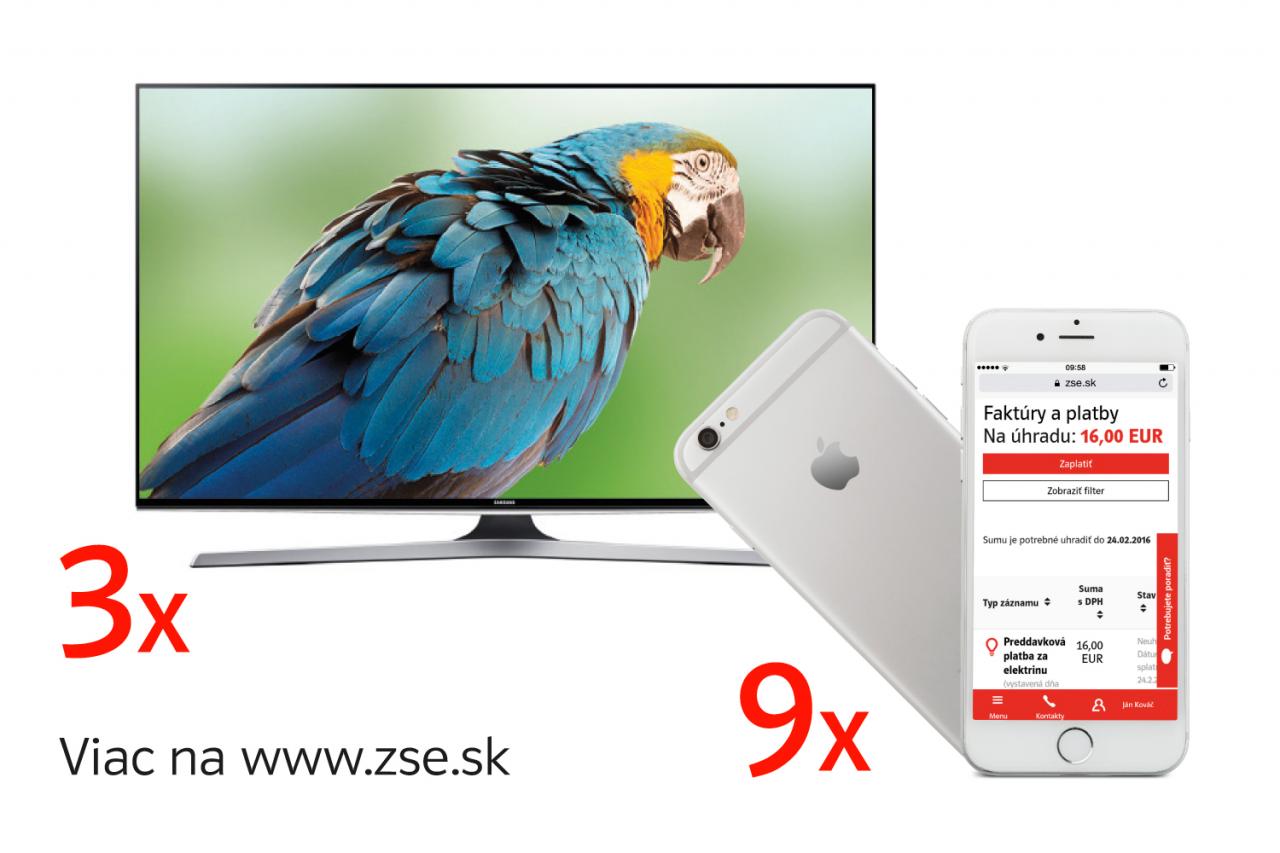 Začnite využívať online Zákaznícku zónu aj vy a získate zadarmo online darček podľa vlastného výberu. Navyše ste automaticky v hre o jeden z 9 smartfónov iPhone 6S a jeden z 3 Smart televízorov Samsung. Kliknite na www.zse.sk.