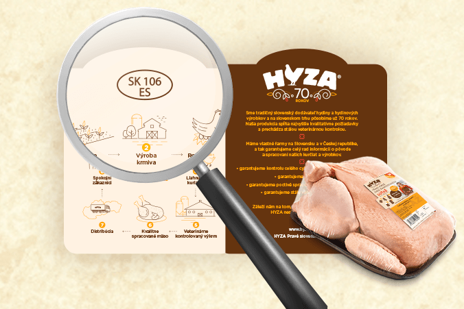 HYZA nie je "prebaľovačom", ale poctivým spracovateľom a výrobcom hydiny, ktorý sa pod kvalitu svojich produktov hrdo podpíše. Na pultoch predajní nájdete výrobky buď označené logom HYZA, alebo oválom "SK106ES", pod ktorým je zaregistrovaný závod v Topoľčanoch.