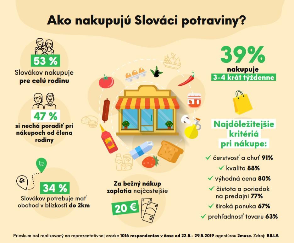 Za najdôležitejšie faktory pri výbere potravín považujú čerstvosť, chuť a kvalitu potravín. Samozrejmosťou je výhodná cena, ale aj čistota a poriadok v predajniach. Hovoria o tom výsledky reprezentatívneho prieskumu, ktorý pre spoločnosť BILLA na vzorke 1 016 respondentov realizovala agentúra 2muse koncom mája 2019.