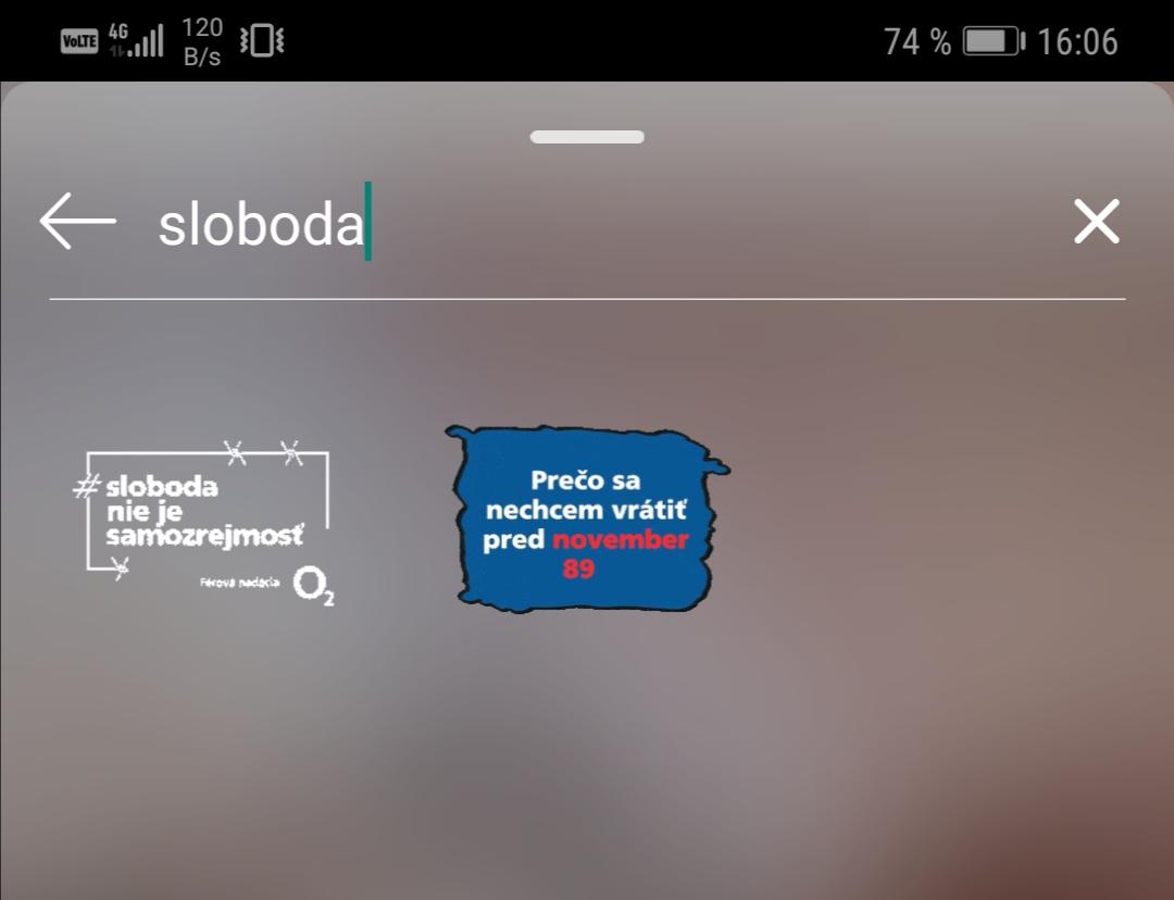 Odpovedať na otázku môže ktorýkoľvek používateľ Instagramu, na ktorom O2 zverejnilo logo kampane v gif formáte, ktoré nájde po zadaní kľúčového slova „sloboda“ do vyhľadávania. (viď printscreen)