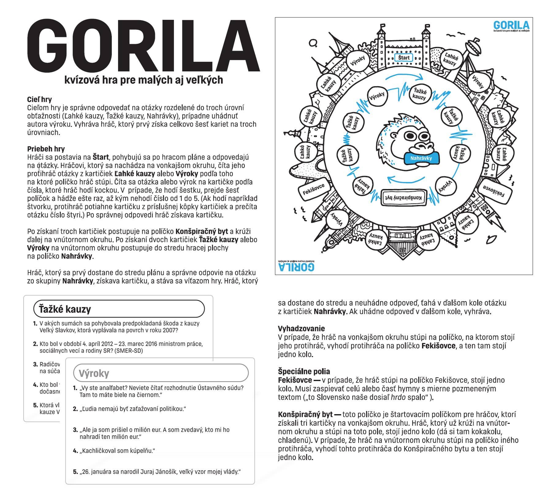 My v našom „inštitúte“ sa dlhodobo v debatách pri obede venujeme politickej psychológii alebo – ako to len nazvať – určitej symbolicko-psychologickej rovine faktického diania vo verejnom priestore. Politický folklór, symboly a celá tá „mytológia“ hýbe médiami a Slovenskom. Je to fascinujúce. A Gorila ako„matka všetkých káuz“ sedí vysoko na slovenskom Olympe. Naše četovanie sa občas podobalo hádankám, a tak nejako sa zrodil základný koncept.