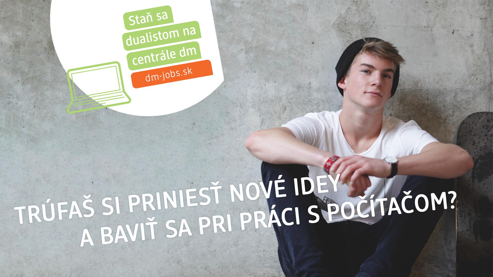 Rôzne obrázky, moderný svet farieb a trendy ikony harmonicky dotvárajú nový vzhľad duálneho vzdelávania a podčiarkujú, aké rozmanité toto vzdelávanie je. „V najbližších mesiacoch bude kampaň viditeľná nielen na plagátoch a letákoch v našich predajniach, vo vybraných novinách, televíznych reláciách či webových portáloch, ktorými chceme oslovovať rodičov, ale aj v online, pretože práve tam sa mladí ľudia zabávajú a trávia veľa času. V rámci online komunikácie tak žiaci odborného vzdelávania a ich inštruktori našim potenciálnym žiakom kreatívnym spôsobom ukážu, v čom je duálne vzdelávanie v dm zaujímavé,“ povedala Nicol Noseková, manažérka marketingu dm drogerie markt.