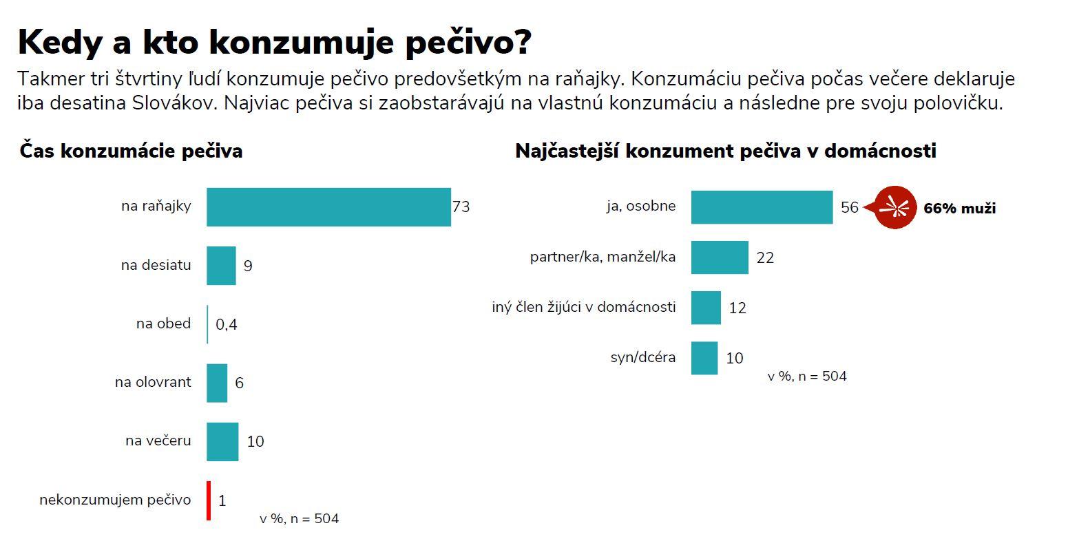 konzumácia chleba a čerstvých pekárenských výrobkov má na Slovensku dlhoročnú tradíciu. Ľudia si ich zvyknú natierať maslom, džemom či medom, ale aj paštékami či slanými nátierkami. Pečivo sa konzumuje aj ako doplnok k iným jedlám, napríklad k slanine, klobáse, treske v majonéze alebo hustej polievke. Obľúbenosť pečiva u Slovákov potvrdzuje aj prieskum agentúry 2muse, ktorý si v auguste na vzorke 506 respondentov nechala vypracovať spoločnosť BILLA. Z prieskumu vyplýva, že tri pätiny opýtaných ľudí konzumujú chlieb a pečivo denne, pričom necelé tri štvrtiny opýtaných začínajú pečivom svoj deň v podobe raňajok. „Okrem toho viac ako polovica opýtaných uviedla, že chlieb a pečivo si kupuje pre seba, a pätina oslovených tieto produkty vyhľadáva pre partnera či partnerku. Najviac pečiva v domácnosti pritom skonzumujú muži (66 %),“ povedala hovorkyňa BILLA Kvetoslava Kirchnerová.