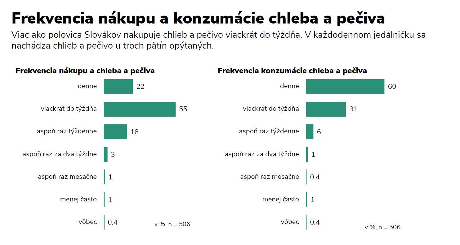 konzumácia chleba a čerstvých pekárenských výrobkov má na Slovensku dlhoročnú tradíciu. Ľudia si ich zvyknú natierať maslom, džemom či medom, ale aj paštékami či slanými nátierkami. Pečivo sa konzumuje aj ako doplnok k iným jedlám, napríklad k slanine, klobáse, treske v majonéze alebo hustej polievke. Obľúbenosť pečiva u Slovákov potvrdzuje aj prieskum agentúry 2muse, ktorý si v auguste na vzorke 506 respondentov nechala vypracovať spoločnosť BILLA. Z prieskumu vyplýva, že tri pätiny opýtaných ľudí konzumujú chlieb a pečivo denne, pričom necelé tri štvrtiny opýtaných začínajú pečivom svoj deň v podobe raňajok. „Okrem toho viac ako polovica opýtaných uviedla, že chlieb a pečivo si kupuje pre seba, a pätina oslovených tieto produkty vyhľadáva pre partnera či partnerku. Najviac pečiva v domácnosti pritom skonzumujú muži (66 %),“ povedala hovorkyňa BILLA Kvetoslava Kirchnerová.