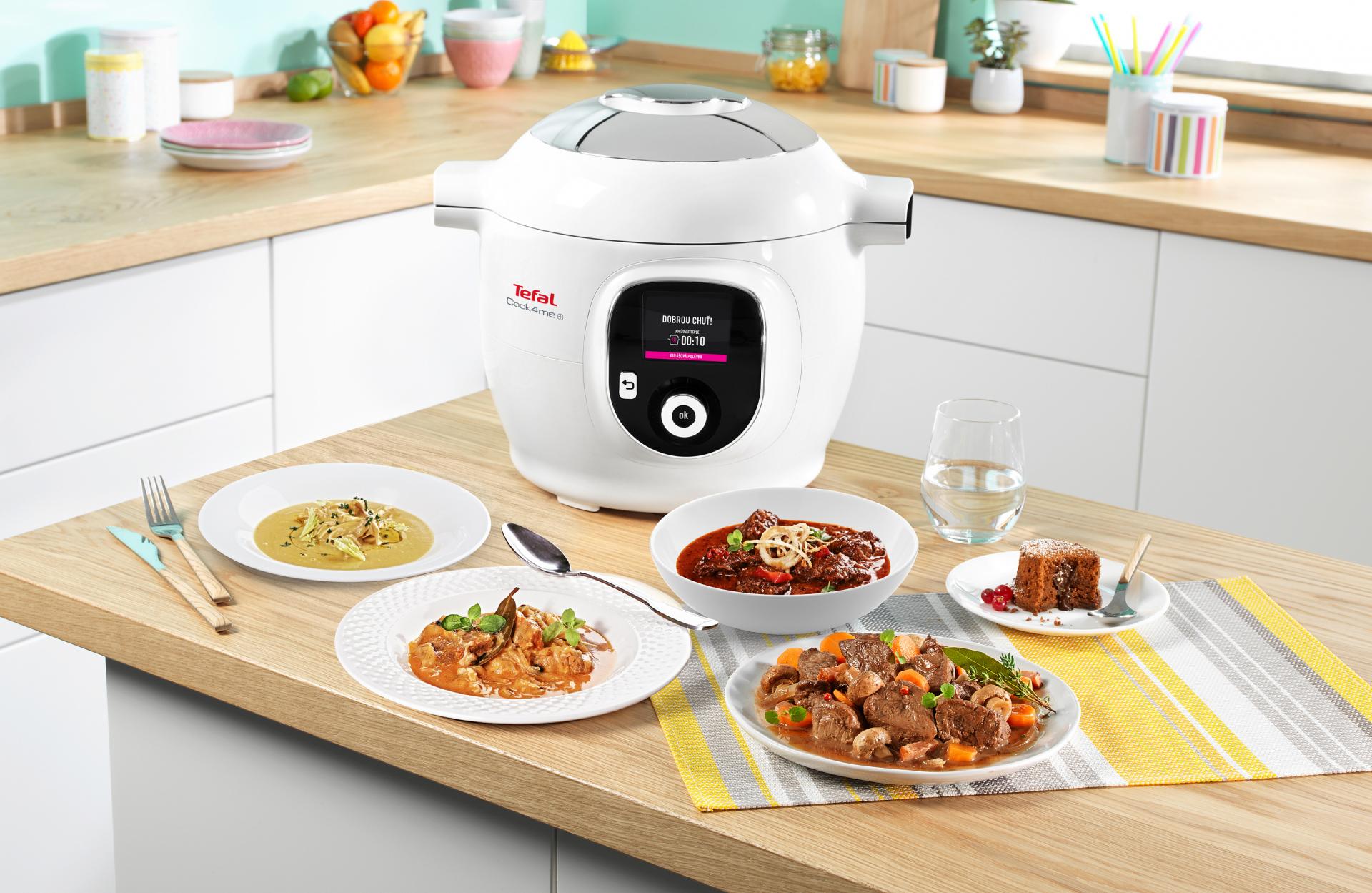 Revolúcia v kuchyni s geniálnym pomocníkom s výrečným názvom Cook4me + (CY851130), čiže uvar mi! Digitálny multifunkčný hrniec vám pomôže uvariť ľahko a rýchlo, v kuchyni zastane niekoľko úloh - poslúži ako pomalý hrniec, ryžovar alebo parný hrniec. Stlačením gombíka jednoducho vyberte jeden zo 150 nahratých receptov pre predjedlá, hlavné jedlá a dezerty, alebo si nastavte varenie podľa konkrétnej ingrediencie. Väčšinu receptov navyše zvládne do 15 minút. Odporúčaná cena je 277 eur.
