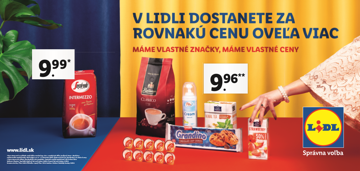 O svojich „skvelých ponukách“ hovoria mnohí. Ako sa teda v rôznych a často podobných posolstvách zorientovať? Lidl vo svojej najnovšej kampani o výhodných nákupoch nielen hovorí, ale ponúka aj dôkazy. Prezentuje v nej cenu značkového produktu a naproti nemu ukazuje, že za rovnakú cenu dostanete v Lidli kvalitný výrobok vlastnej značky a navyše si môžete dopriať ešte oveľa viac. Napríklad: cena pracieho prášku Ariel Color s objemom na 72 praní je 18,99 €, v Lidli vás nákup pracieho prášku Formil Color s objemom na 80 praní (8,99 €), aviváže Doussy (2,19 €), odstraňovača vodného kameňa W5 (3,99 €) a univerzálneho odstraňovača škŕn Formil (2,99 €) bude stáť iba 18,16 €. Alebo starostlivosť o bábätká: za cenu detských plienok Pampers active baby (49 ks – 13,99 €) dostanete v Lidli výrobky kompletnej starostlivosti o najmenších vlastnej značky Lupilu (50 ks - 6,99 €; detský príkrm - 1,35 €; bavlnené vlhčené obrúsky - 1,39 €; detské mydlo – 0,39 €; vatové tyčinky – 0,79 €; krém proti zapareninám – 1,69 €) a ešte ušetríte 1,35 €. Zdá sa vám to neuveriteľné ako koza v kúpacej čiapke či hovoriaci obraz? Opak je pravdou. „Máme vlastné značky, máme vlastné ceny. Tak znie jeden z hlavných bodov našej obchodnej stratégie a tiež motto kampaní zameraných na naše privátne značky,“ uviedol Branislav Brzula, marketingový riaditeľ Lidl Slovenská republika, a pokračoval: „Našim prianím je, aby si vysokú kvalitu mohol dovoliť skutočne každý, náš koncept demokratizuje nákupy. V komunikácii prezentujeme výrobky známych značiek a po všetkých stránkach porovnateľné výrobky našich privátok. Zároveň zákazníkom na základe jednoduchého vyobrazenia cien ukazujeme, že u nás dostanú za svoje peniaze vysokú kvalitu a ešte viac, oveľa viac. Ak hľadáte kvalitu, obe alternatívy sú skvelé. Je však na vás či si vyberiete drahšiu alebo výhodnejšiu možnosť.“
