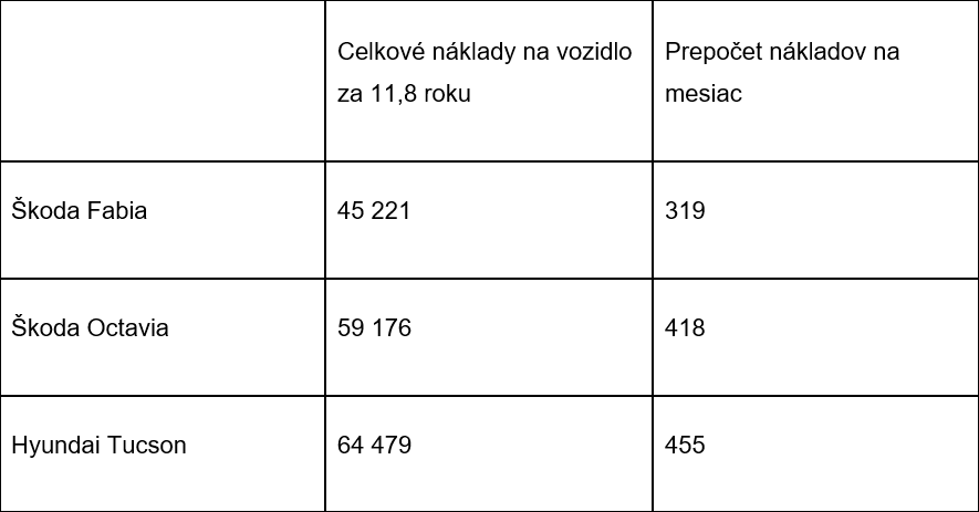 Z hore uvedeného nám vychádza, že pri priemernej životnosti auta a priemernom použití nás auto stojí podobné peniaze ako hypotéka. Samozrejme, náklady nie sú rozložené rovnomerne. V prvých rokoch v prípade leasingu auto splácate, neskôr zase platíte viac za servis. V každom prípade sú náklady na auto porovnateľné s nákladmi na bývanie.