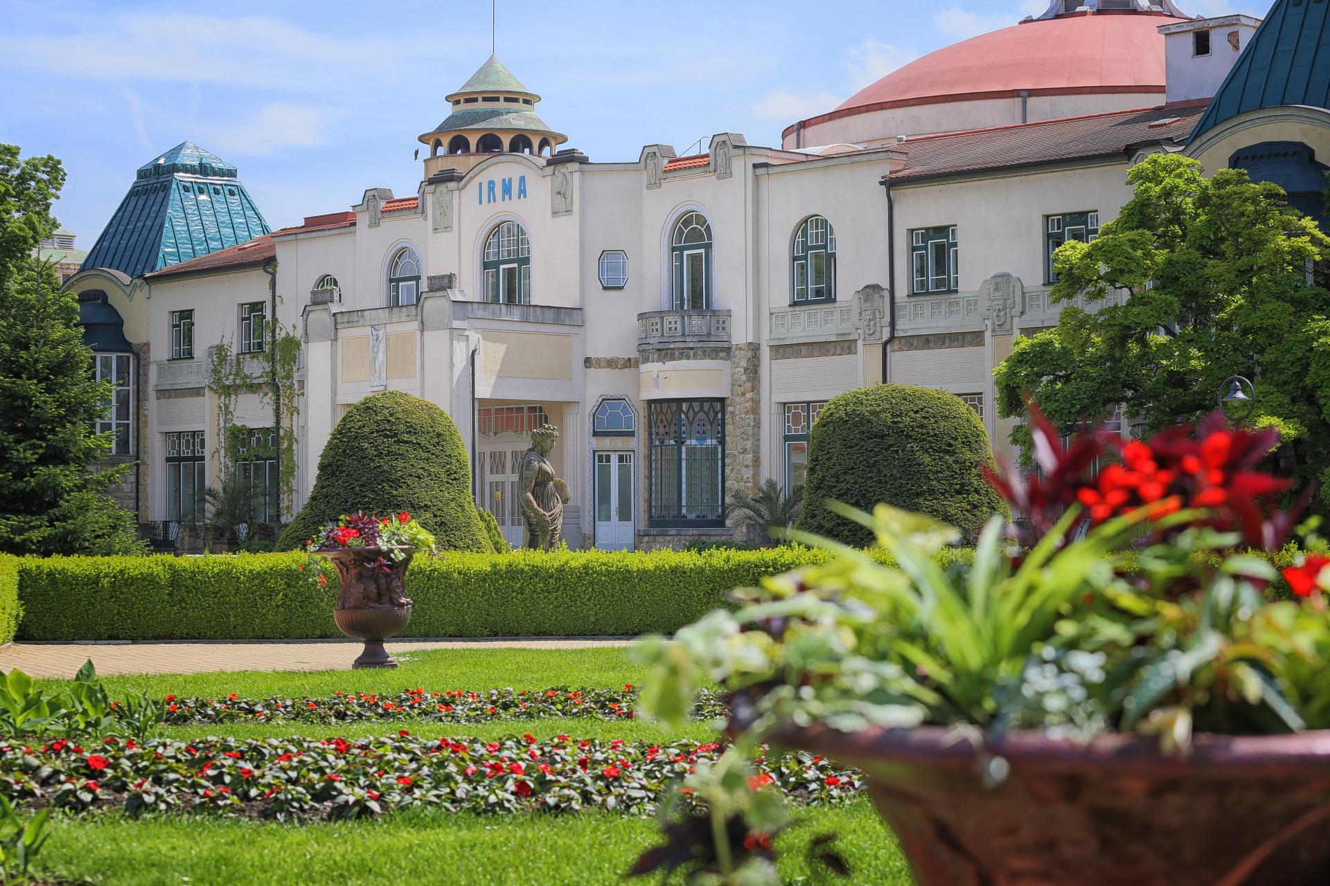 V roku 1910 sa začalo so stavbou secesného hotela Thermia Palace a Kúpeľného domu Irma. Dialo sa tak pod vedením žilinského staviteľa Grüna na mieste, kde kedysi stála krčma „U bosého“ Investorom bola firma Alexandra Wintera, ktorej sa splnilo predsavzatie vybudovať najmodernejší kúpeľný hotelový komplex v strednej Európe.