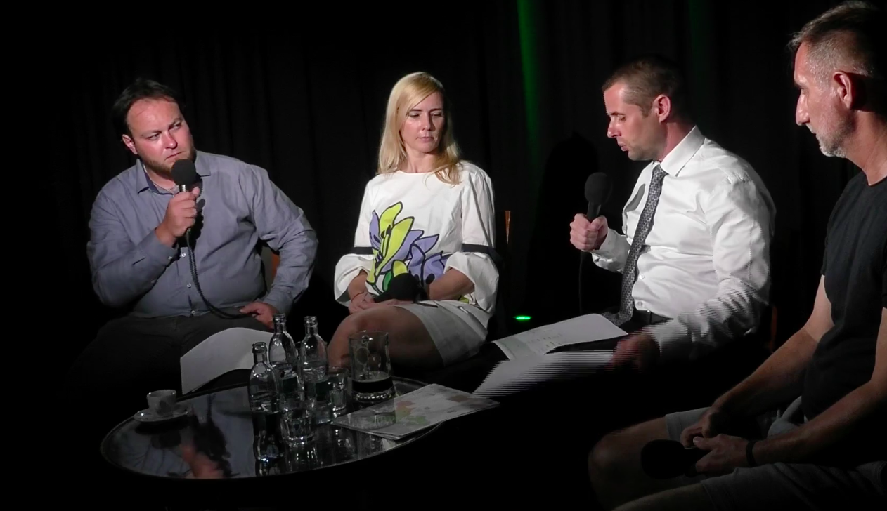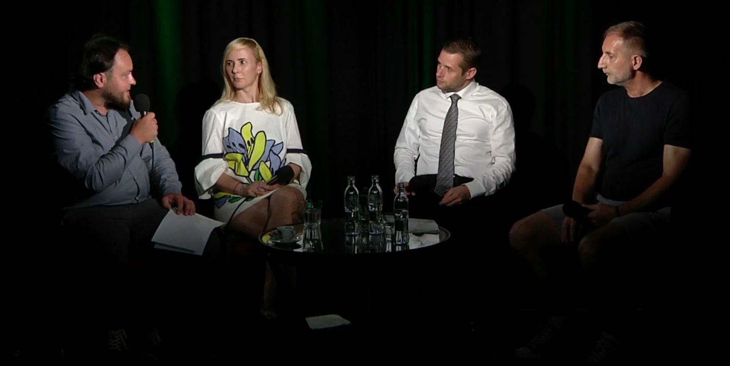 diskutujú štátny tajomník MZVEZ Martin Klus, Tatiana Ondrejková a Pavol Mladý z CK Pelikán.
