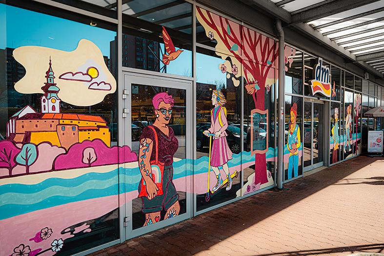 Z Bratislavy sa Sasha a Wajcko presunuli do Nitry, kde v dňoch 15. až 18. marca ručne maľovali výklad predajne dm vo Family Centre. Vizuál tohto ručne maľovaného výkladu, ako aj vizuály štyroch polepov výkladov vychádzajú z ilustrácie bratislavského murálu, pričom každý z nich obsahuje svoje jedinečné lokálne prvky, ako napríklad kroj, v ktorom je oblečená jedna zo ženských postáv, či pre dané mestá typické budovy.