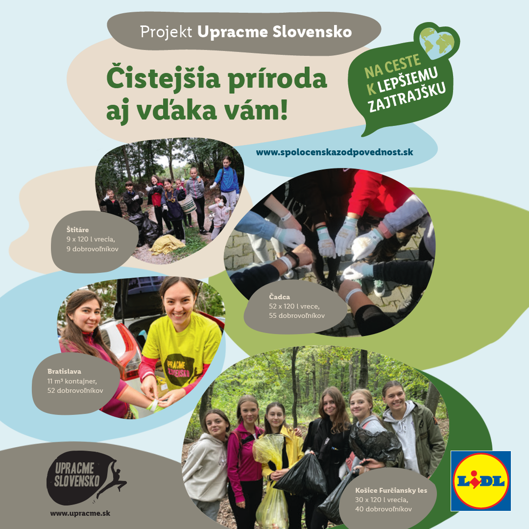 "Cieľom združenia Upracme Slovensko je poukázať na to, aké je dôležité bojovať so zbytočným odpadom v našich mestách, dedinách, parkoch, uliciach, a niečo proti tomu reálne podniknúť. Veď planéta je bohatstvom, ktoré máme, a je nevyhnutné zachovať ju pre naše budúce generácie. Za pomoc pri organizácii celej akcie sa chceme poďakovať našim partnerom a sponzorom, predovšetkým generálnemu partnerovi Lidl, vďaka ktorému sme mohli zabezpečiť pomôcky na upratovanie všetkým dobrovoľníkom,“ povedala Veronika Repiská z Upracme Slovensko, organizátora najväčšej dobrovoľníckej aktivity na Slovensku – Svetového čistiaceho dňa.