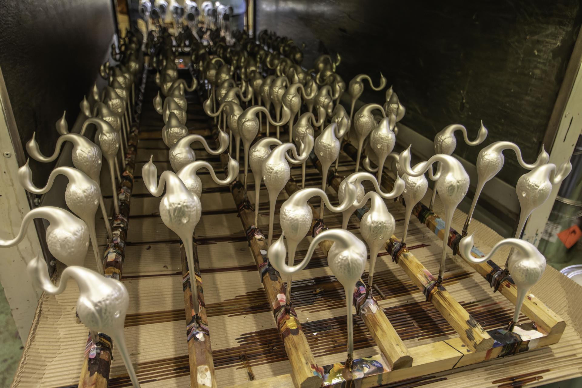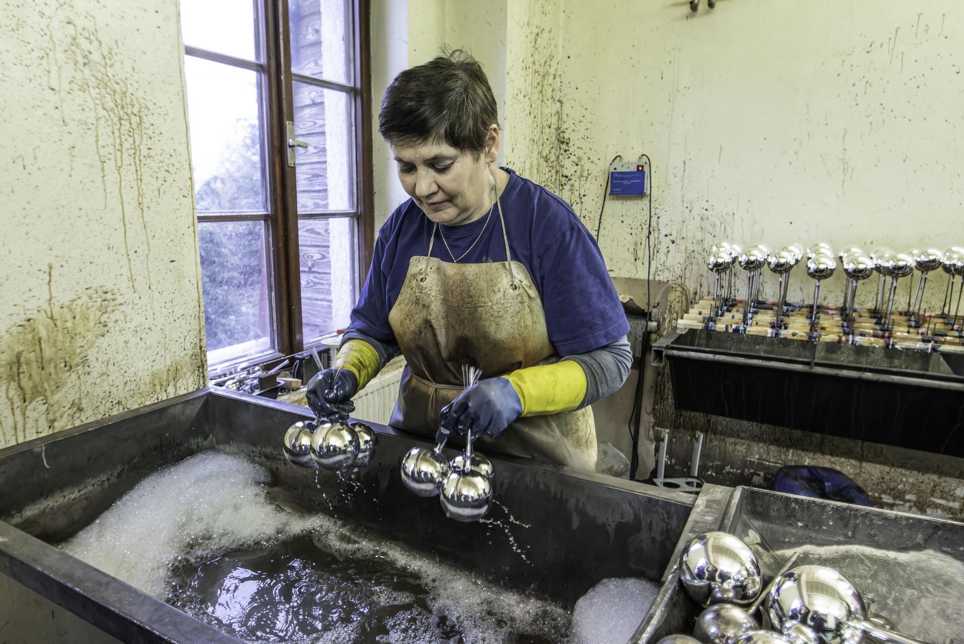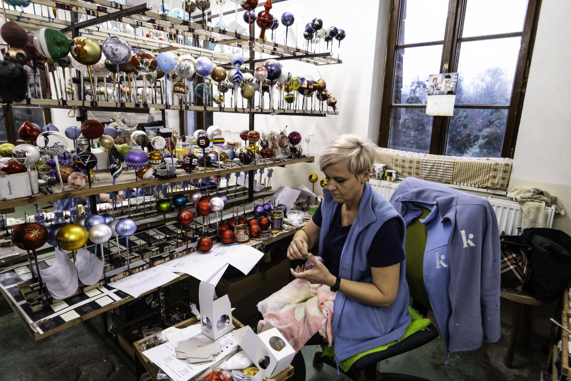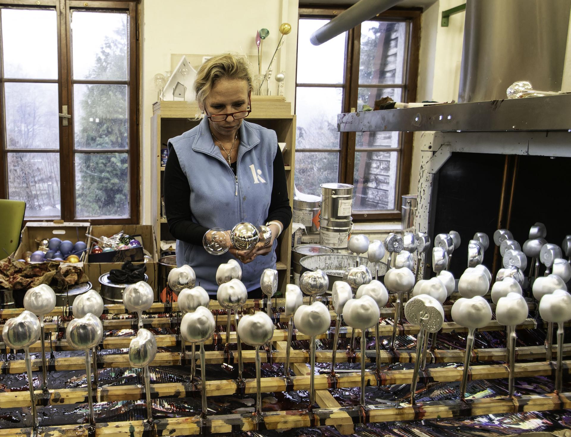 Všetky ozdoby vyrábajú tradičným spôsobom – ručne a v prvej etape aj ústne. Sklenené ozdoby sa vyfukujú zo sklených tyčí. Gule a tvary ako plameniaky či labute sa fúkajú „na voľno“. „Nie je tu žiadna možnosť opravy, takže sa fúka na prvú dobrú,“ vysvetľuje nám sprievodkyňa. Taká labuť sa musí stihnúť za 4 minúty, kým sklo stuhne. Pred dvoma rokmi sa podaril zápis do Guinessovej knihy rekordov – na festivale labutí, ktorý zorganizovali v rámci Koulieru, zhromaždili 2022 labutí.