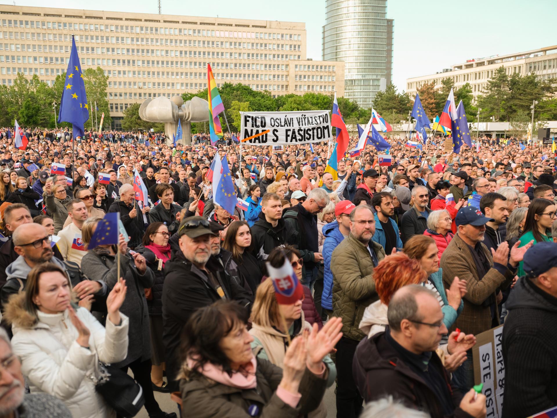 dnes nám opäť hrozí, že nás súčasná vláda na čele s premiérom Ficom rovnako dostane na nesprávnu stranu dejín. O toto dnes ide a tomuto sa treba rozhodne postaviť,“ vyhlásil Korčok pred protestujúcimi.