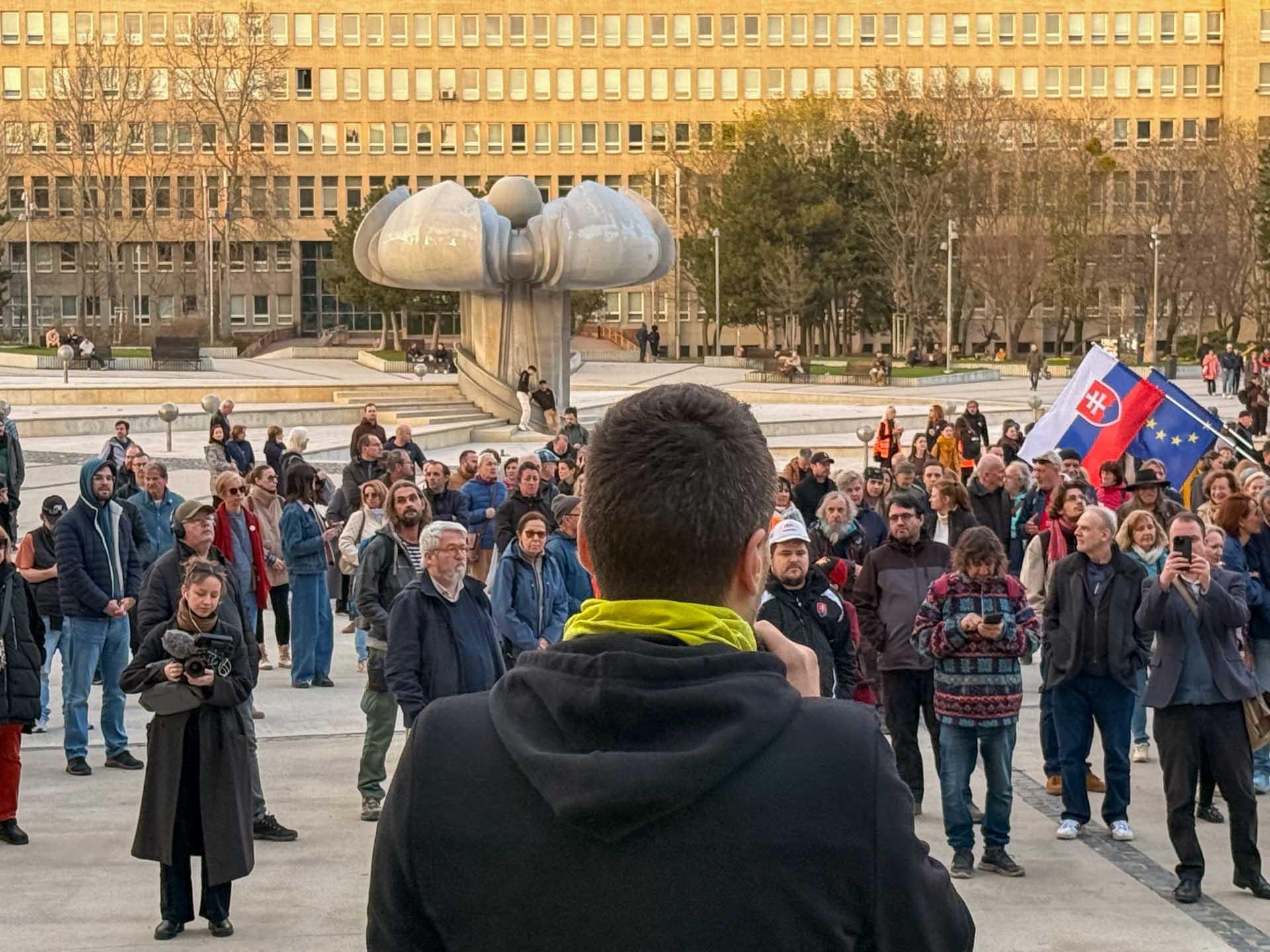 protest „Bráňme spolu STVR“ zorganizovala iniciatíva Mier Ukrajine. Podľa dostupných informácií sa pripravované zmeny môžu dotknúť aj redaktorov a tvorcov kritických voči vedeniu.