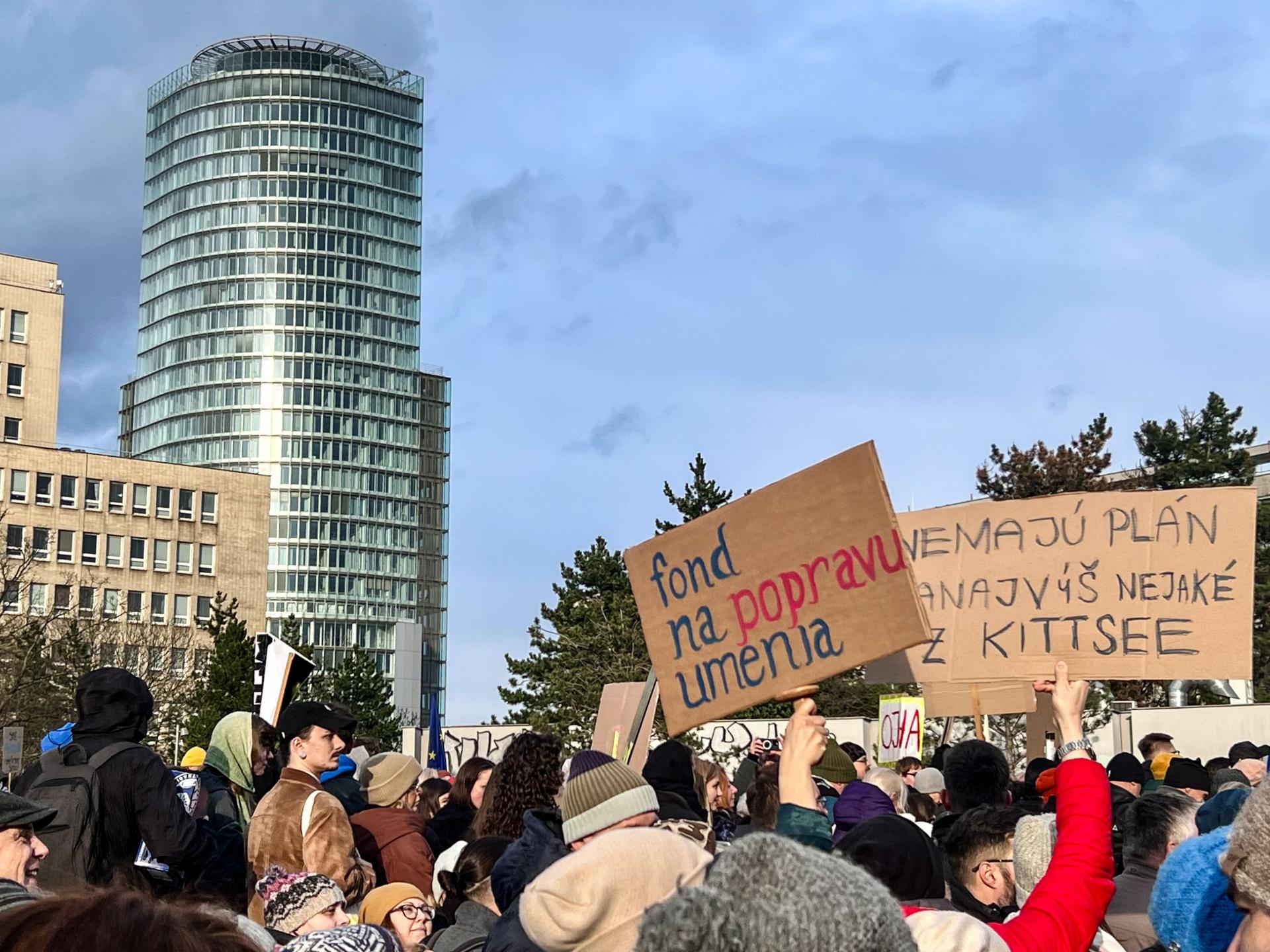 všade bolo počuť hudobné nástroje a celé skupiny – od gajdošskej starej hudby cez bubenícke súbory až po ten najlepší folklór, keď sa ľudský had vrátil na Námestie Slobody. Veľa vtipnoostrých transparentov, veľa vecí, vydávajúcich zvuk: Hluk a dav je niečo, čo sa prieči mojej najvnútornejšej prirodzenosti, ale toto ma tak nejako tešilo. A neviem, či som na niektorom proteste videl toľko mladých ľudí, ako na tomto.