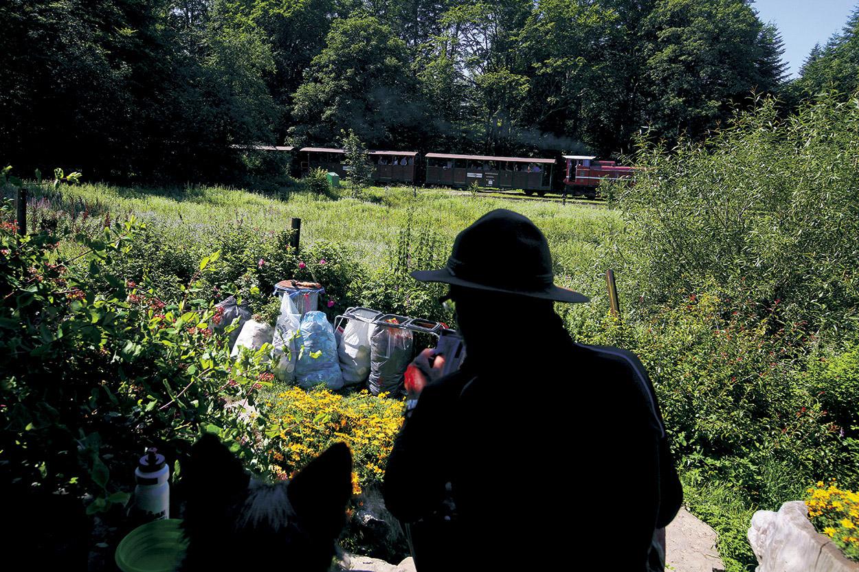 Sedíme všetci traja pri poháriku a pozorujeme tiene horúceho leta. Vtom ticho pretne piskot lokomotívy. Vláčik z Bojnice, aký tu jazdí šesťkrát denne, doviezol asi dvesto turistov. Slovenské pivo, ukrajinské keksy a poľské nanuky idú u Vojteka na dračku. O pol hodiny vlak odíde a zavládne opäť ticho, ktoré občas preruší rachot mechanizmov. V Poľsku sa teraz ťaží drevo ostošesť, aj v chránených územiach. „Kaczinského strana Právo a spravodlivosť musí z niečoho zaplatiť stodvadsať eur na každé dieťa, ako sľúbili,“ povie Juda sarkasticky.
