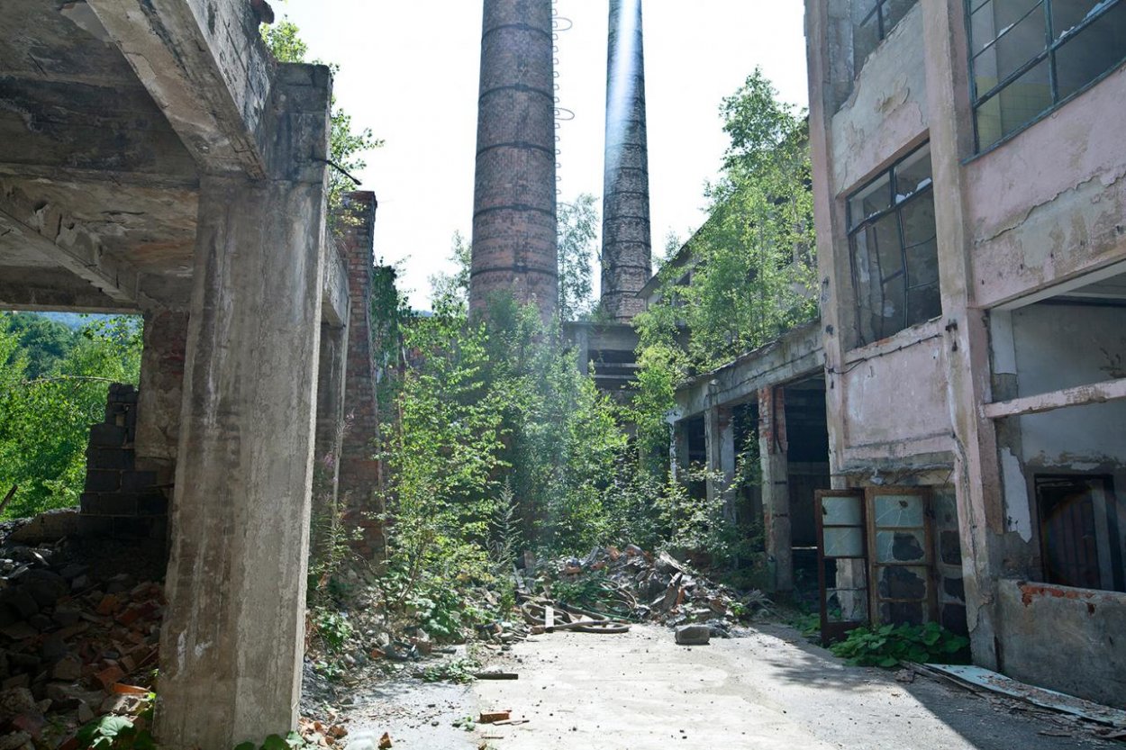 A skutočne. Ak starosta privolí a odomkne vám bránu do areálu (bývalých) sklární, tak vás premkne pocit, že sú tu v kroví či na poschodí zabudnutí bojovníci, možno džihádisti, o to viac, ak ste vojnový reportér. Zničené, na betón „oholené“ budovy, komíny čo trčia ako pahýle či ruiny hradu, na ďalšie využitie či do zberných surovín odvezený inventár, stroje a technológie. Je to vôbec možné? – pýtate sa.