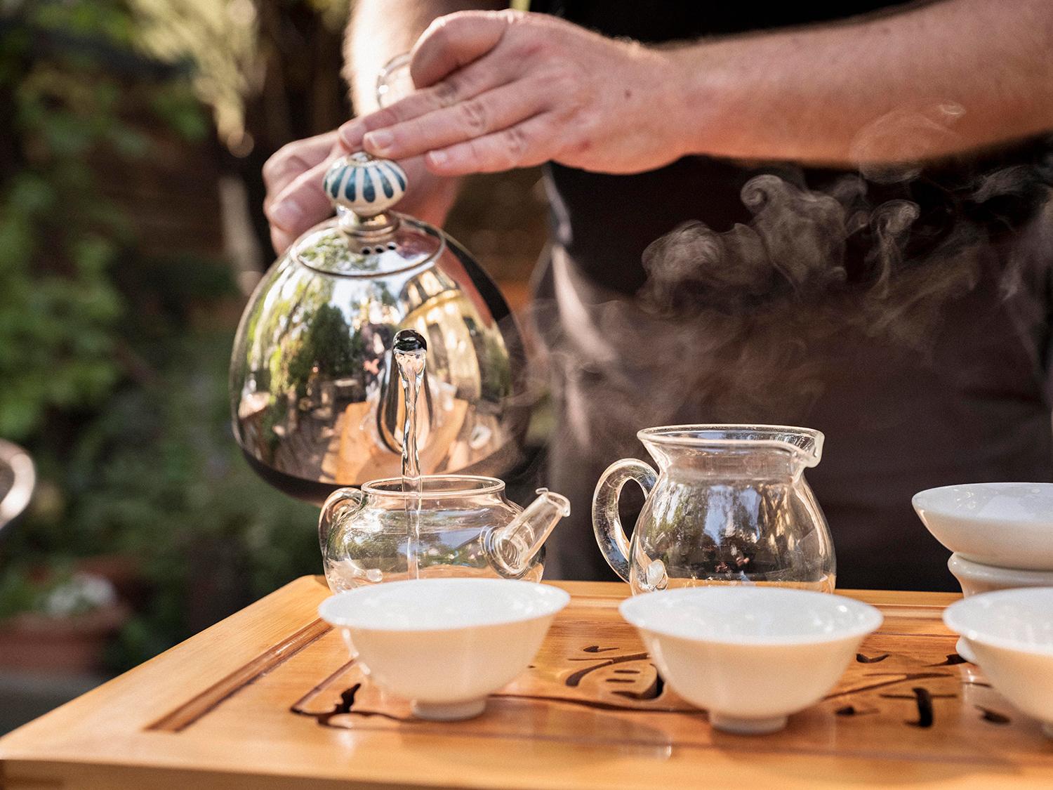 Príprava čaju sa začína bez čajových lístkov – vyhriatím servisu (nádoby, v tomto prípade čajníka), kde budete čaj lúhovať horúcou vodou. Do zohriateho čajníka nasypeme čajové lístky, ktoré začnú vydávať krásnu vôňu. Privoniame. Toto je prvý pôžitok, niečo ako keď pri degustácii nosom „ochutnáme“ víno, ktoré sa chystáme okoštovať. Lístky zalejeme vodou a necháme vylúhovať. Čas lúhovania je kratší, ako by ste si zrejme mysleli, a ráta sa skôr na desiatky sekúnd ako na minúty, ale pozor – žiaden stres. Treba vyskúšať aj kratšie, aj dlhšie a zistíme, či nám viac chutí jemnejší čaj s kratším lúhovaním alebo výraznejší s dlhším. „Toto experimentovanie tiež patrí k príprave čaju,“ hovorí Zajo.