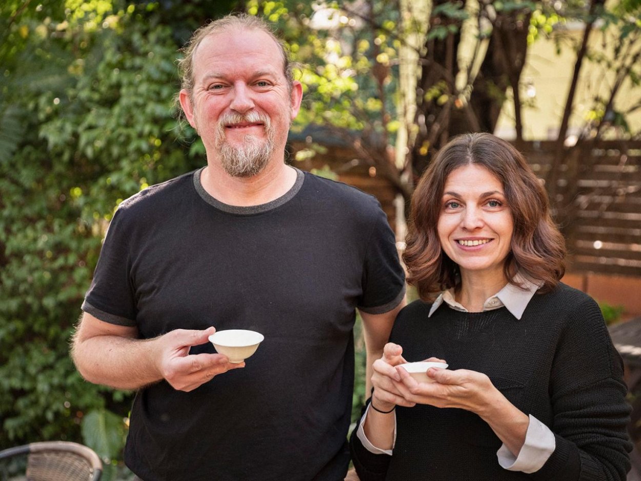 a keďže k stromu (aj krom) patrí dom, do jedného ideme. Volá sa Čajový dom. Je to najstaršia špecializovaná predajňa a čajovňa v Bratislave, aj keď po covide zatiaľ slúži hlavne ako obchod a výdajňa e-shopu, ktorý tento rok oslavuje 20 rokov. Kraľujú tu Jozef Zajac a jeho partnerka Veronika Vrábelová, ktorých dalo dokopy hádajte čo. Ale nepredbiehajme.