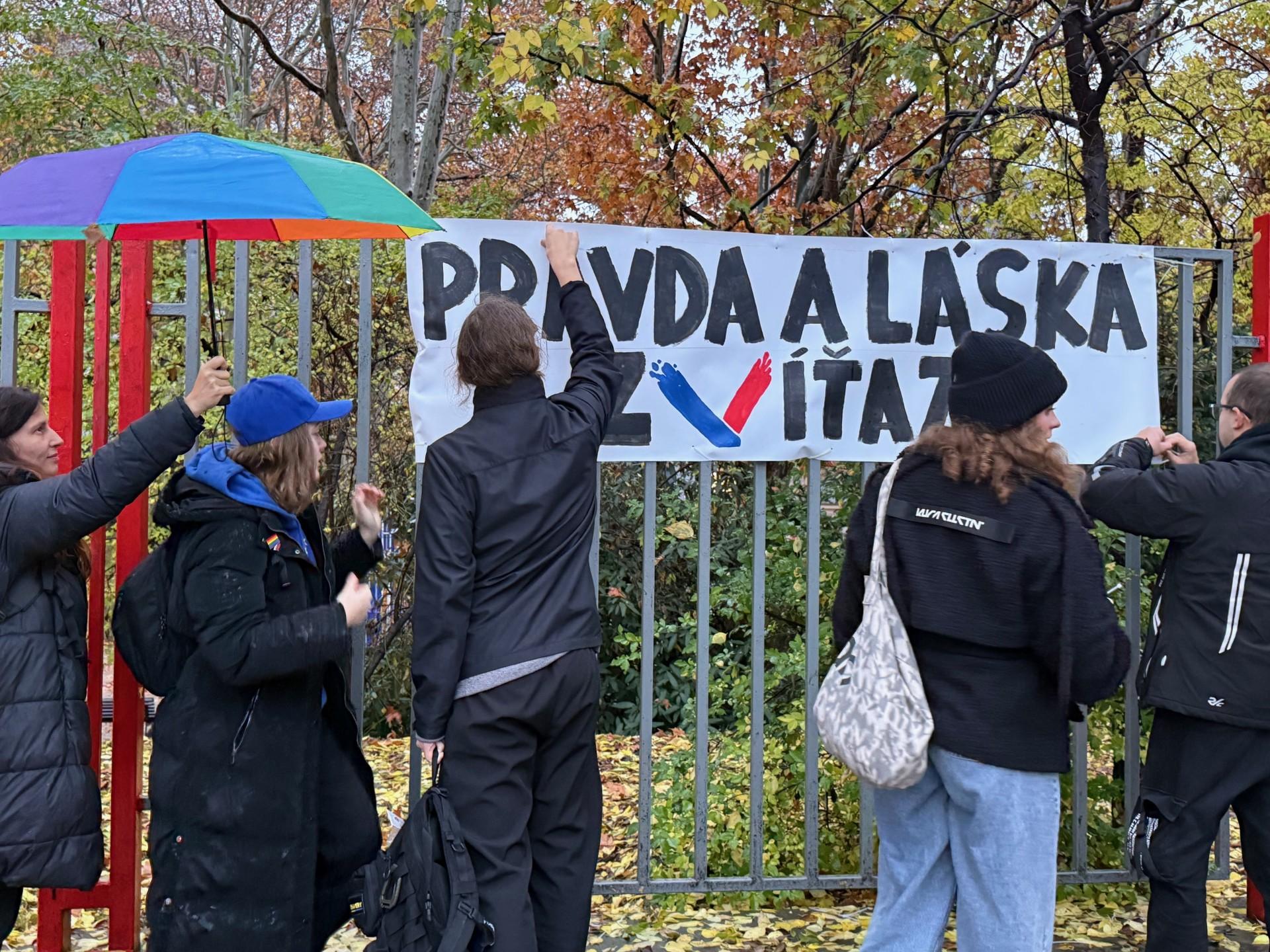 Jeden z bannerov zavesili aj oproti budove Slovenskej informačnej služby na Novej dobe v Bratislave, s povolením miestneho starostu. Práve tam sa už pred časom uskutočnil protest požadujúci odvolanie šéfa SIS Pavla Gašpara.