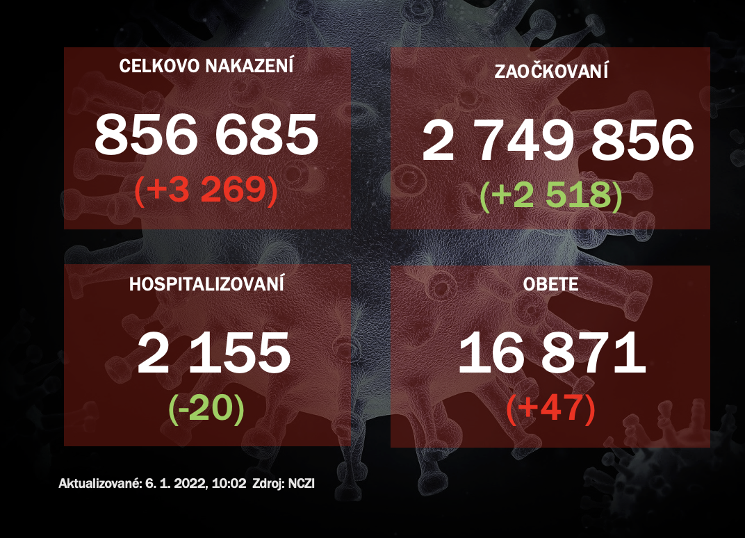 10:05 SLOVENSKO: Prostredníctvom 12 432 vykonaných RT-PCR testov odhalili v stredu (5. 1.) na Slovensku 3269 prípadov nákazy novým koronavírusom. Pribudlo 47 obetí.
