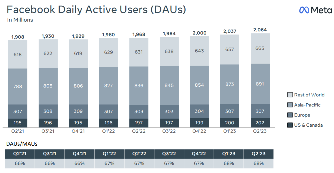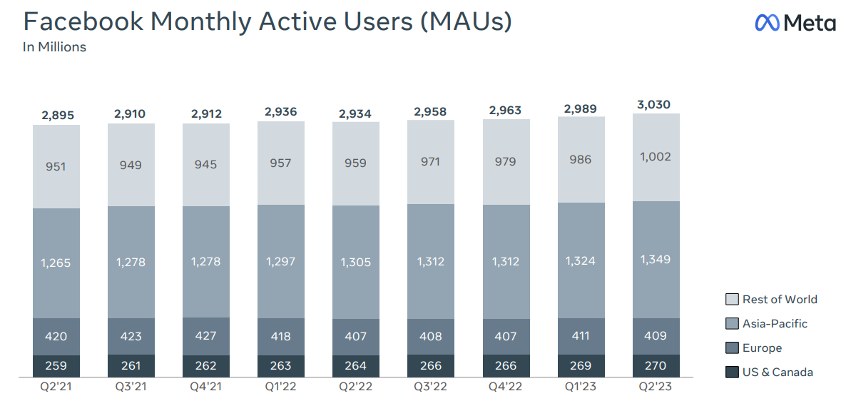 V mesačných počtoch používateľov je to do značnej miery rovnaké, aj keď používanie Facebooku v Európe po miernom náraste v minulom štvrťroku opäť kleslo. Prvýkrát v histórii však Facebook zaznamenal 3 miliardy užívateľov, čo je pre Metu obrovským míľnikom, ktorému sa v tejto fáze žiadna iná aplikácia ani nepriblížila. Pokiaľ vás zaujímajú podrobnosti, odporúčame preskúmať celý report. Viac informácií nájdete aj tu.