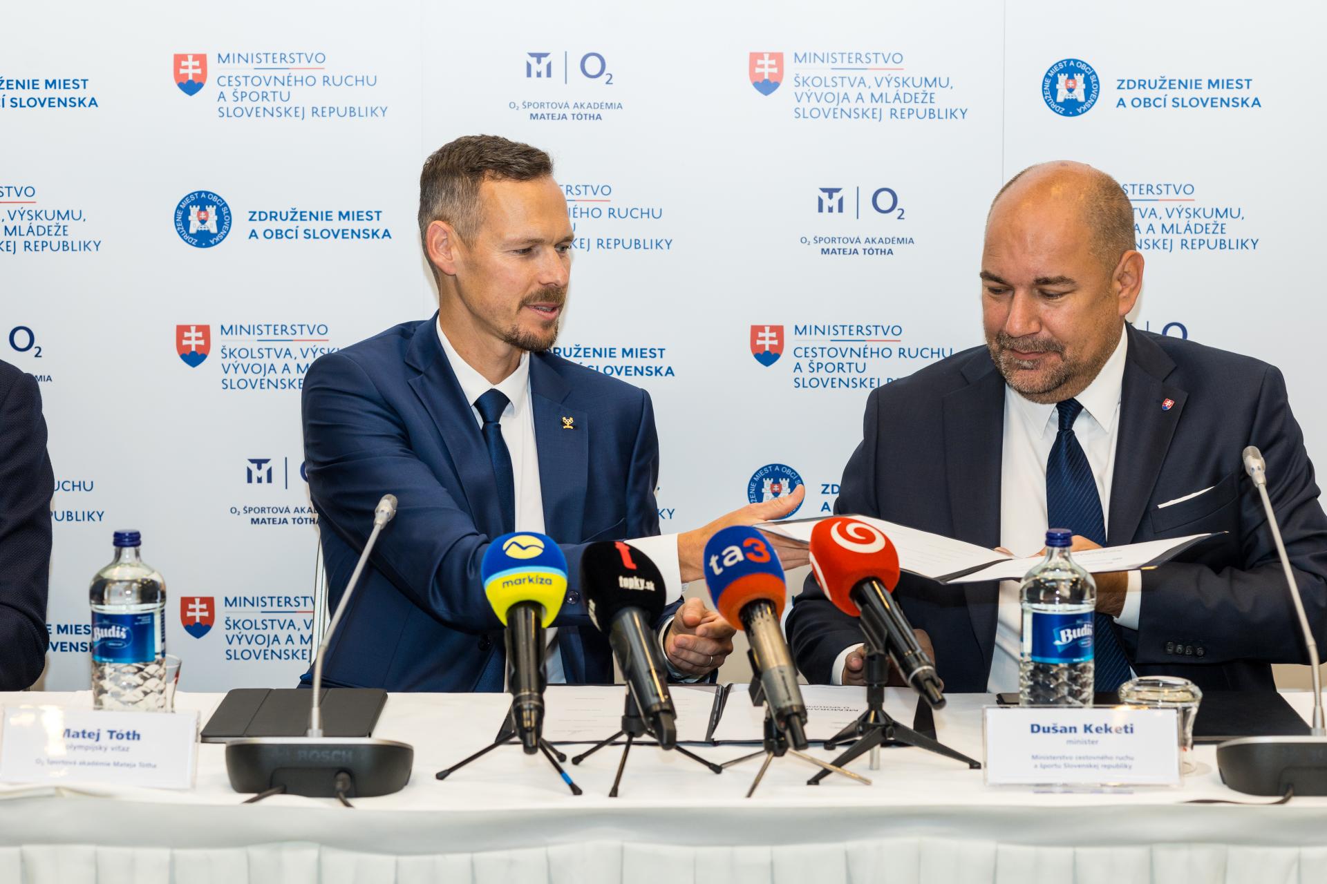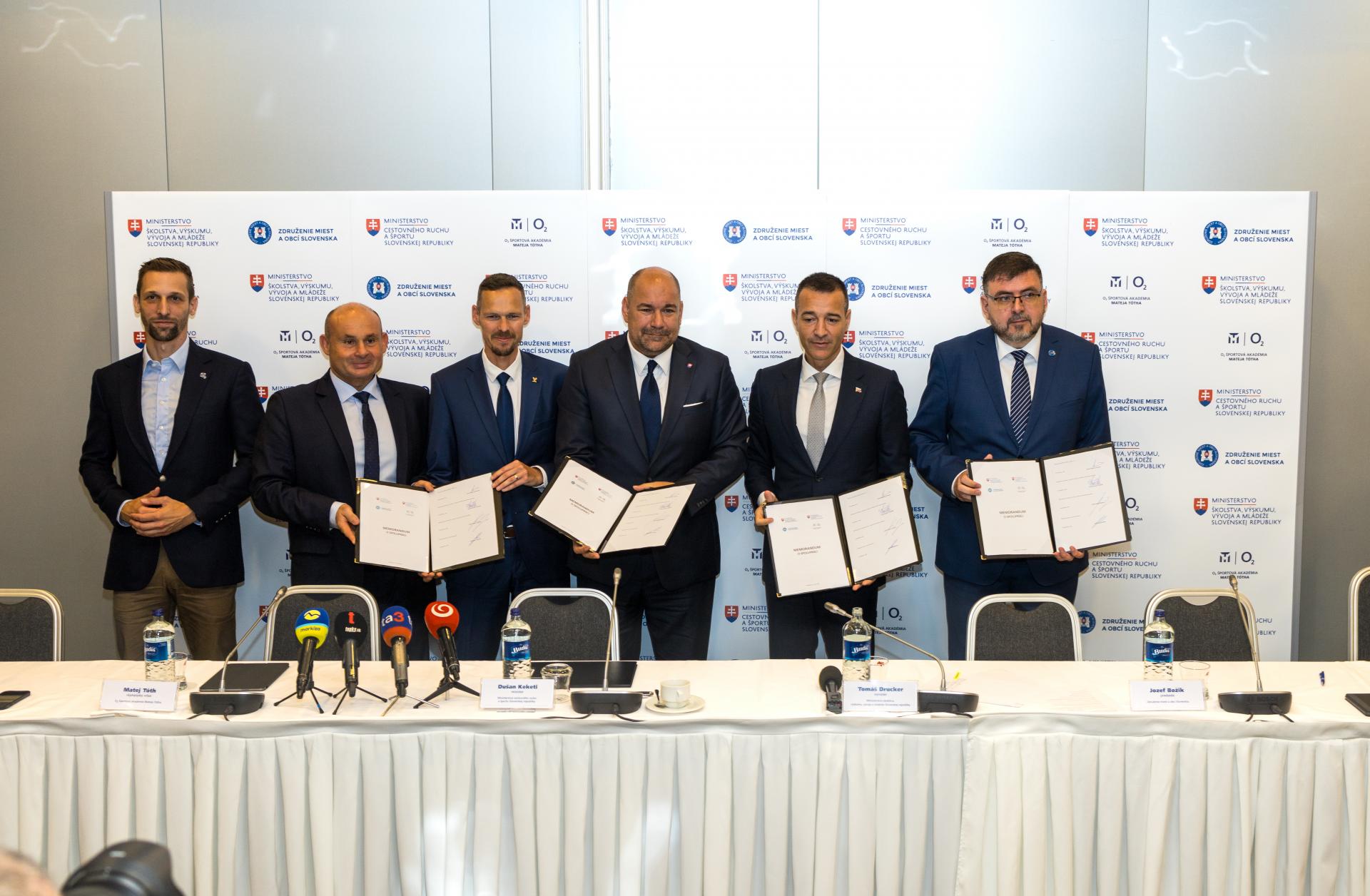 Predposledný deň školského roka tak minister školstva Tomáš Drucker, minister cestovného ruku a športu Dušan Keketi, predseda Združenia miest a obcí SR (ZMOS) Jozef Božik, spoločne so štatutárom O2 Akadémia Mateja Tótha Danielom Pastorekom, podpísali dôležité Memorandum o spolupráci.