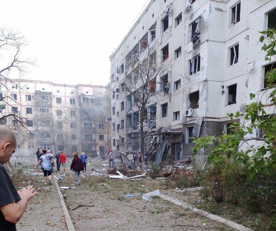 Podľa Humeňukovej Rusi chceli bombardovať Ukrajincami ovládaný pravý breh rieky Dnipro, ale bomba spadla na okupované mesto. „Podľa predbežných informácií sú medzi miestnym obyvateľstvom obete," konštatovala hovorkyňa. Ukrajinský verejnoprávny vysielateľ Suspilne uviedol, že výbuch poškodil štyri viacposchodové budovy.