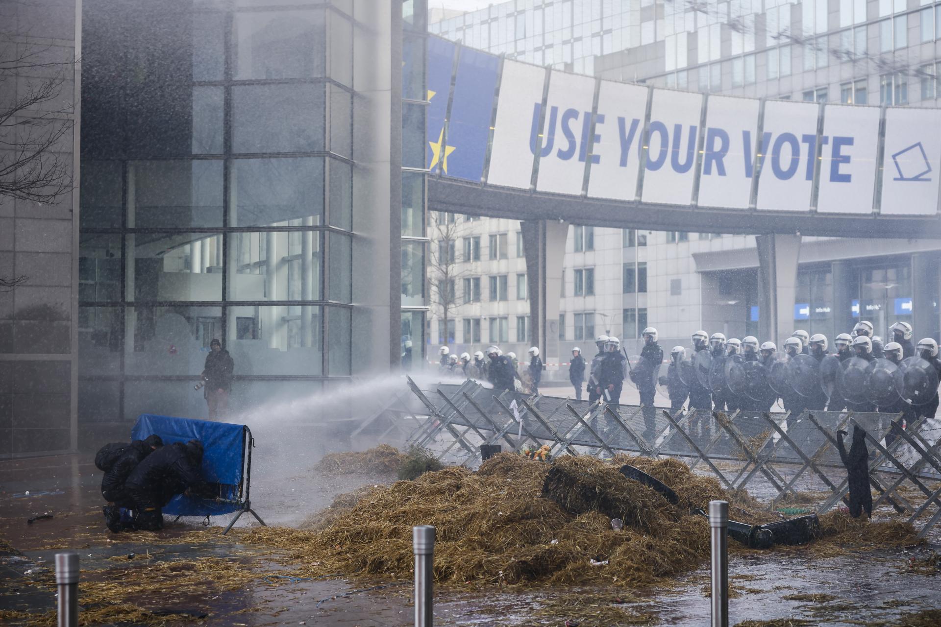 Podľa tlačovej agentúry Belga už v skorých ranných hodinách boli v meste stovky traktorov, pričom niektorí farmári strávili predošlú noc na námestí Place du Luxembourg pred sídlom Európskeho parlamentu. Na tom istom mieste boli protesty hlučné už okolo deviatej hodiny ráno, keď demonštranti pri zrážke s poriadkovými silami zapálili stohy slamy a hádzali na policajtov vajíčka, delobuchy a kamene. Hlásené sú aj materiálne škody na námestí.