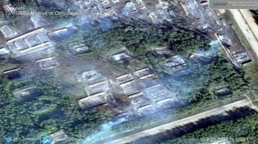 Viac ako 58 skladových budov a niekoľko otvorených priestorov s muníciou ľahlo popolom alebo bolo vážne poškodených pri sobotňajšom ukrajinskom útoku dronmi na arzenál patriaci Hlavnému raketovému a delostreleckému riaditeľstvu ruského ministerstva obrany, ktorý sa nachádza pri obci Okťabrskyj v Tverskej oblasti. Uviedlo to spravodajstvo z otvorených zdrojov OSINT MT Anderson s odkazom sa na nové satelitné snímky.Informuje o tom spravodajský web Ukrajinská pravda.
