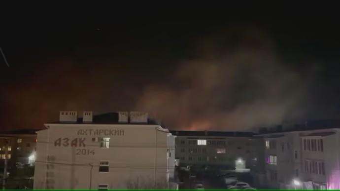 Gubernátor ruského Krasnodarského kraja Veniamin Kondratiev predtým uviedol, že „naši vojaci odrazili útok dronov“, ale trosky spadli na ropnú „nádrž“. „Vypukol požiar", na miesto bolo vyslaných 55 hasičov, konštatoval gubernátor na komunikačnej platforme Telegram. „Podľa prvotných informácií nebol nikto zranený,“ dodal s tým, že sklad obsahuje „nepodstatné zvyšky ropných produktov".
