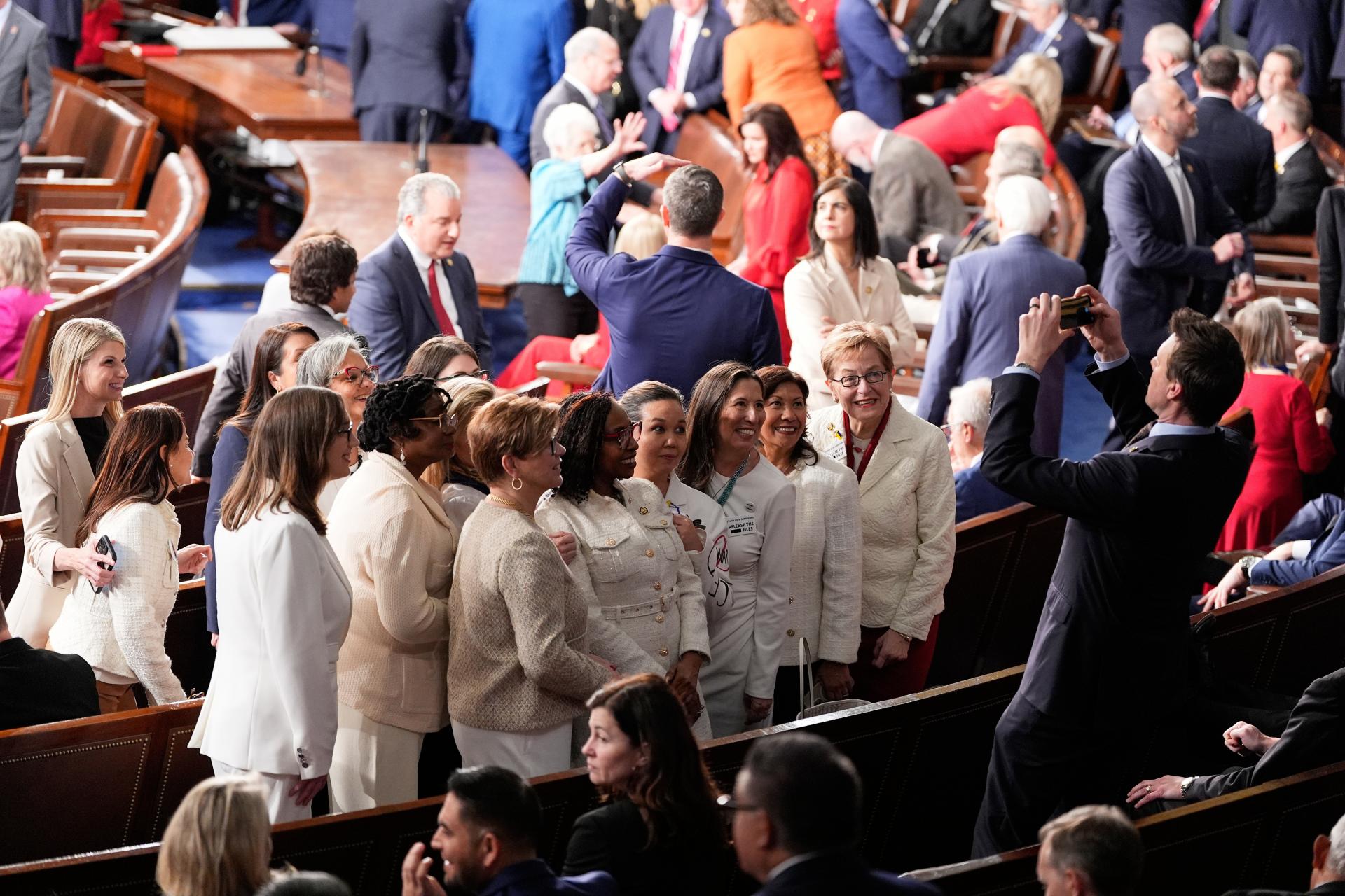 Niekoľko demokratov malo biele oblečenie, aby tak vzdali hold hnutiu sufražetiek oslavujúcemu právo žien voliť, alebo mali pripnuté odznaky požadujúce zodpovednosť osôb uvedených v spisoch a sexuálnom delikventovi Jeffreym Epsteinovi.