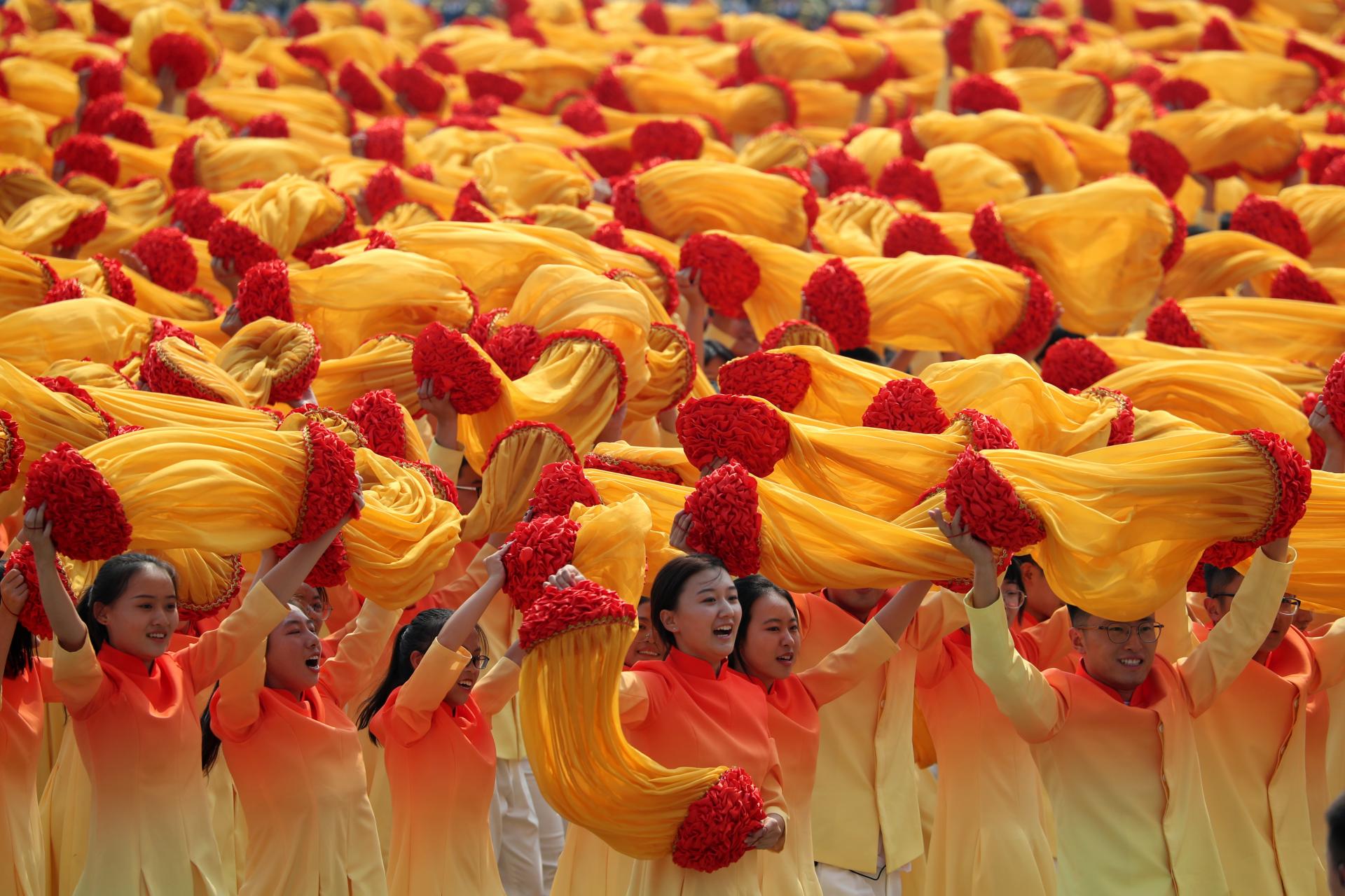 „Neexistuje sila, ktorá by mohla otriasť základmi tohto veľkého národa. Nijaká sila nemôže zastaviť napredovanie čínskeho ľudu a čínskeho národa,“ povedal Si Ťin-pching davu zhromaždených v prejave, ktorý odvysielala čínska štátna televízia.