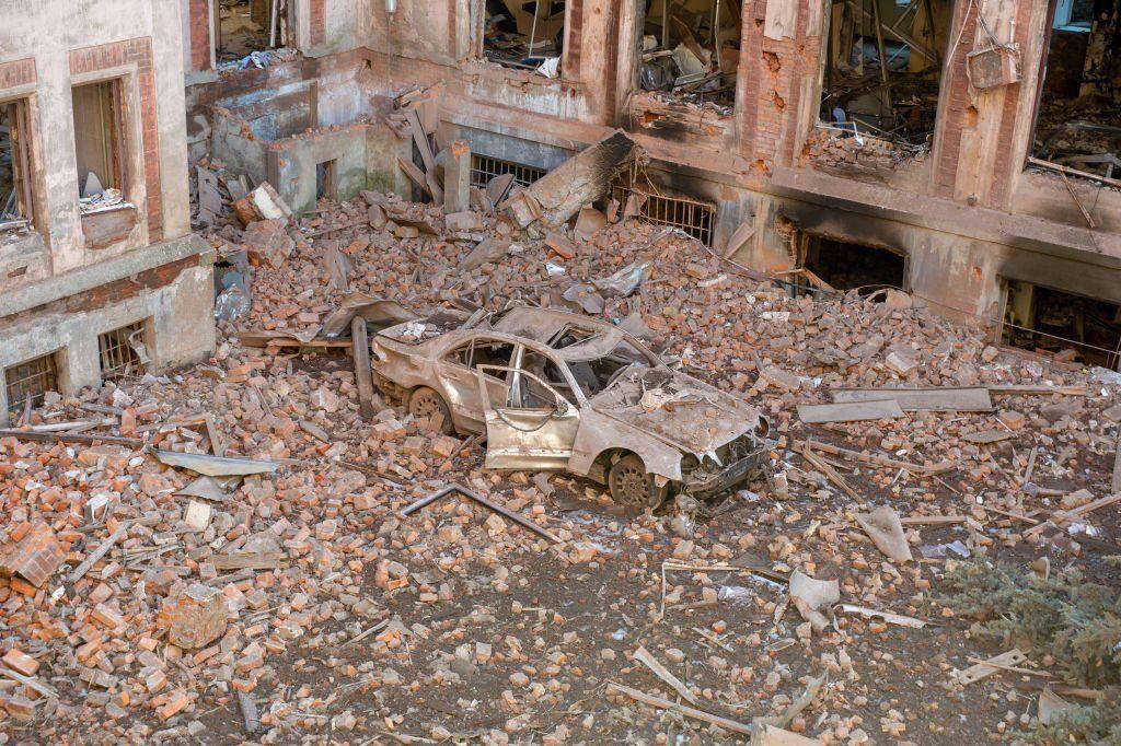 DattalionOchtyrka, mesto oblasti Sumy po bombardovaní