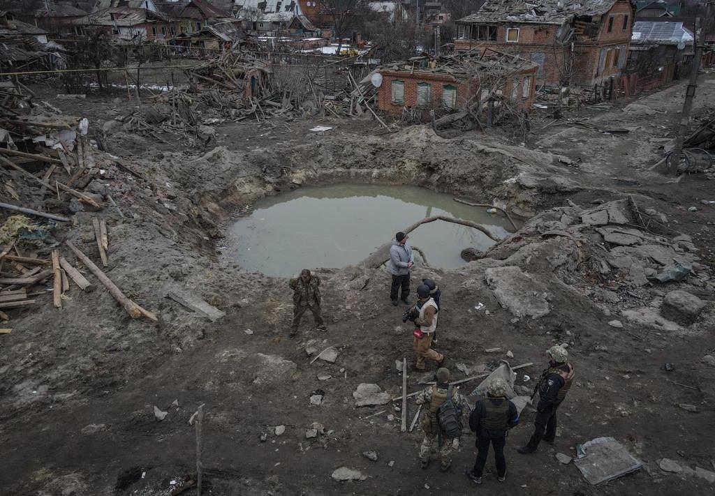 DattalionOchtyrka, kráter po bombardovaní
