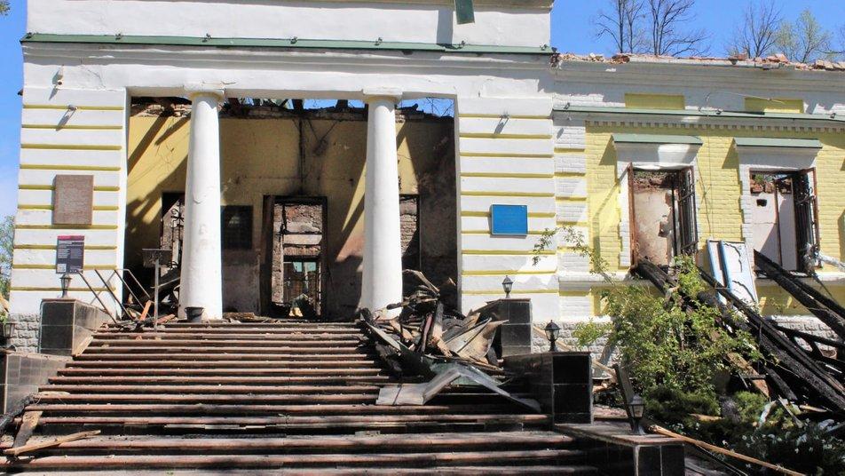 Ukrajina očami napadnutých ľudí: Sobota 7.5.2022 Dattalion Skovorodynivka, Charkovská oblasť zničené múzeum Grigoryho Skovoroda.