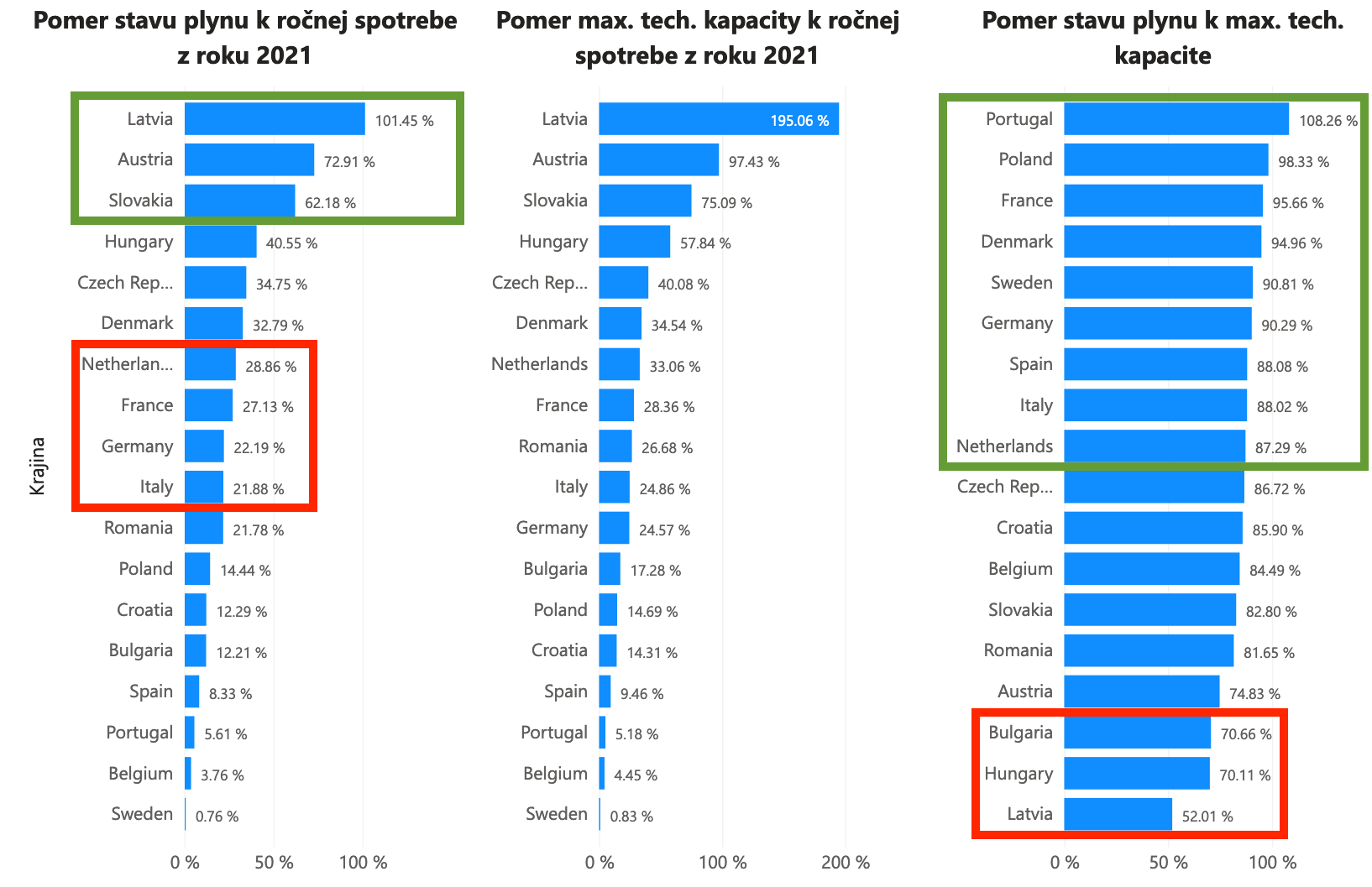 Oproti obdobiu pred mesiacom je EÚ, Slovensko, ale aj kľúčové trhy (75% zásob a spotreby) Nemecko, Francúzsko, Taliansko, Holandsko a Rakúsko vyššie o 9% až o 14% vyššie. Vysoká je dynamika napĺňania zásobníkov, čo bola a je stále pre EÚ priorita. Cieľ bol mať zásoby na 80% plné 1. novembra. Tam sme boli začiatkom septembra.