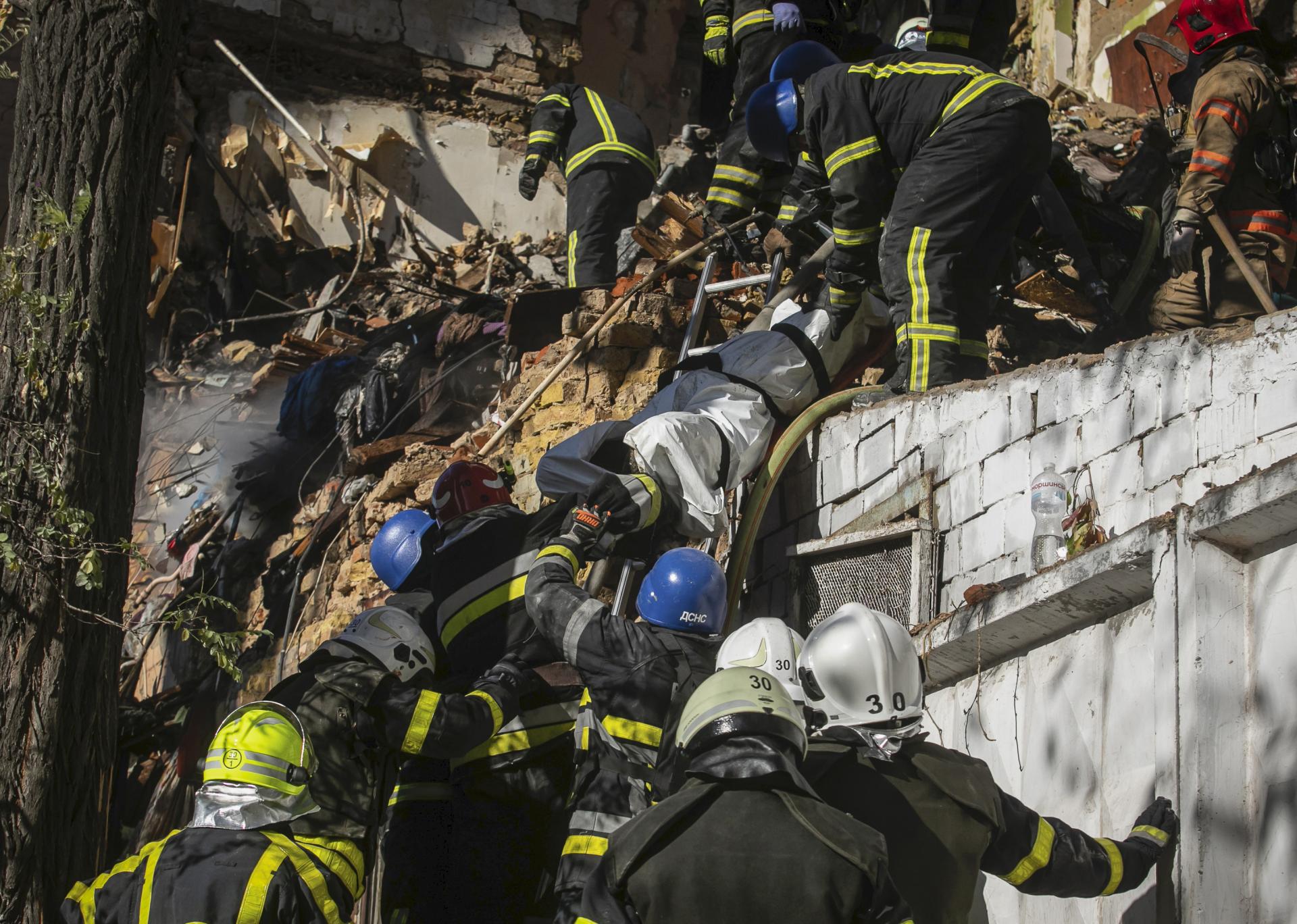 Ukrajinské sily medzitým zostrelili ruskú raketu nad oblasťou Kyjeva, uviedol policajný riaditeľ Kyjevskej oblasti Andrij Njebytov, pričom zverejnil fotografiu, na ktorej vidno dym stúpajúci z lesa, kde podľa neho dopadli trosky rakety.