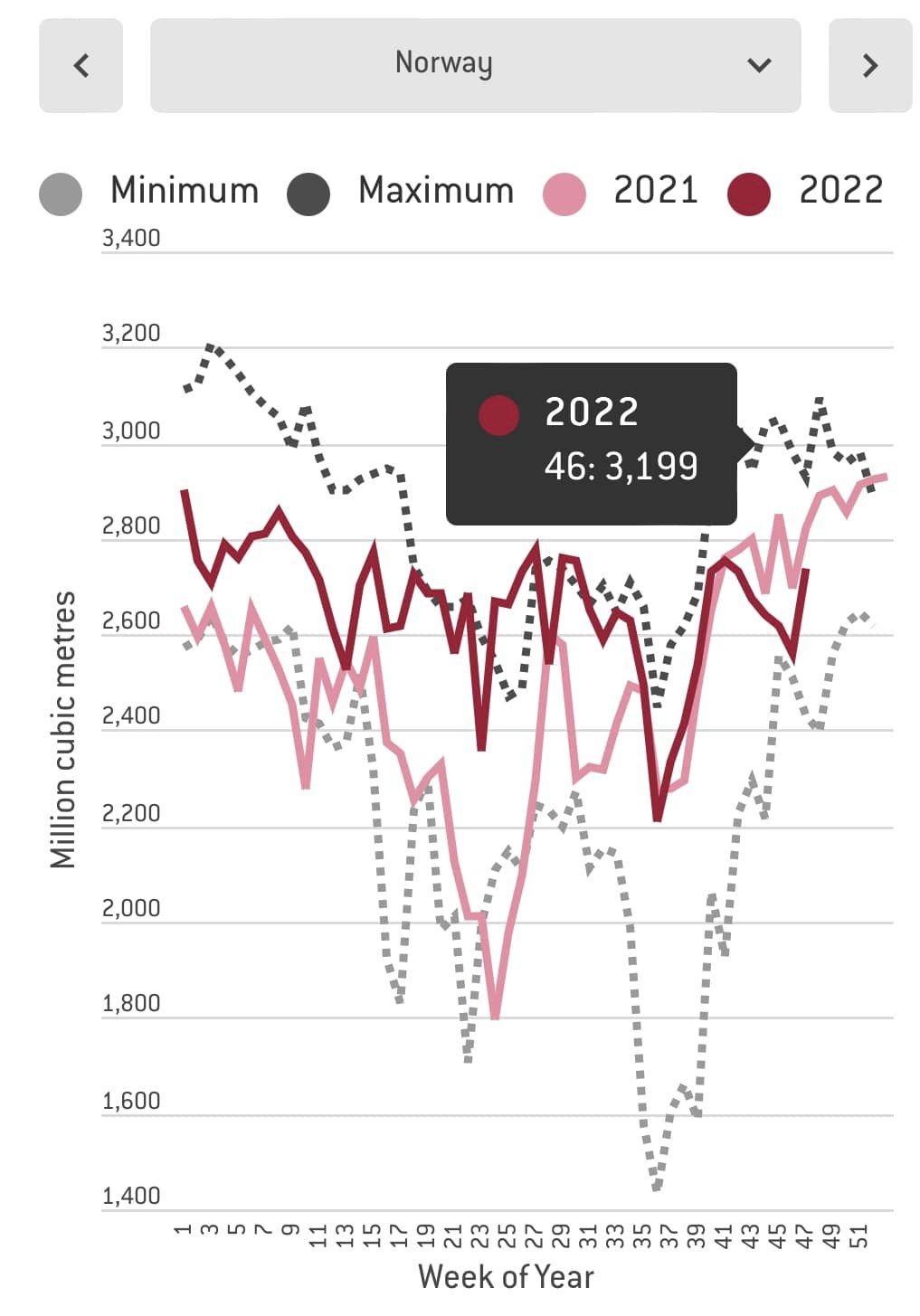 Minulý rok o takomto čase boli zásobníky plné na 65%, čo bolo asi 70 miliárd m3. Bolo to o 23 miliárd m3 menej, čo je ekvivalent dnešného 3-týždňového dovozu. Percentuálne sme dnes so zásobami o 25 percentuálnych bodov vyššie ako pred rokom (91% vs. 66%). Máme o 1/3 vyššie zásoby ako pred rokom.